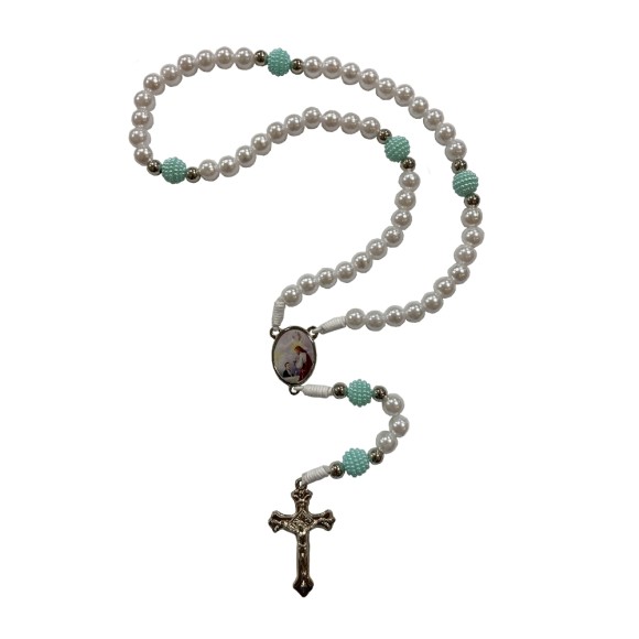 *Terço Primeira Eucaristia Pérola Branca - 38cm.