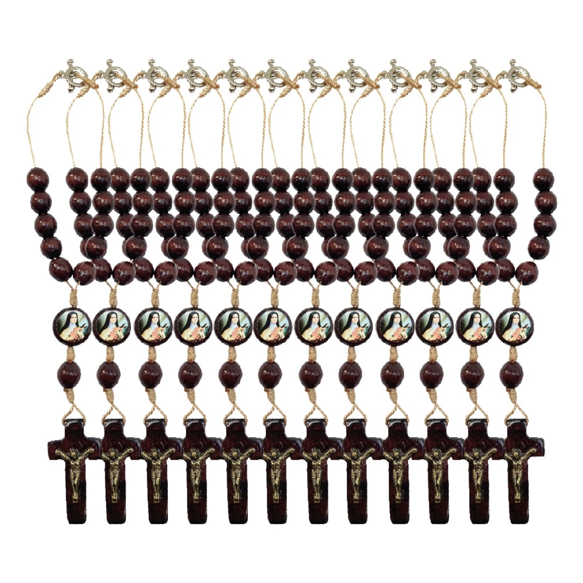 *Dezena Santa Terezinha das Rosas c/ Fecho 12un. (Proteção para Carro) - 19x2,1cm.