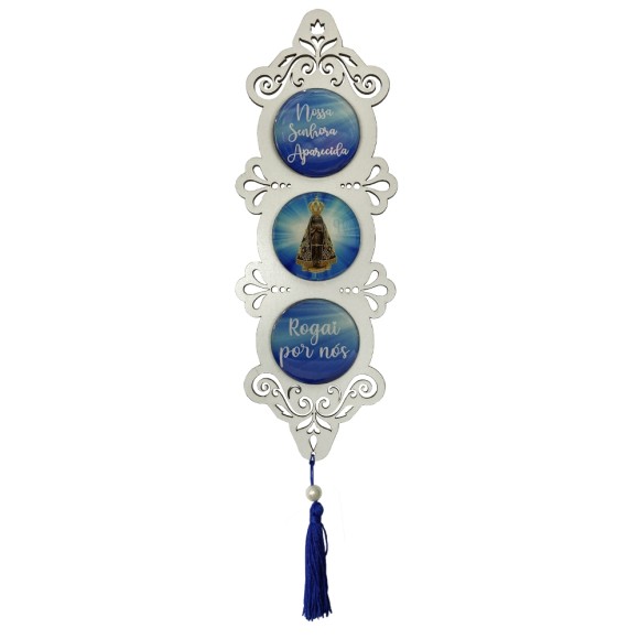 *Adorno N. Sra. Aparecida MDF Branco Resinado - 40x10,5cm.