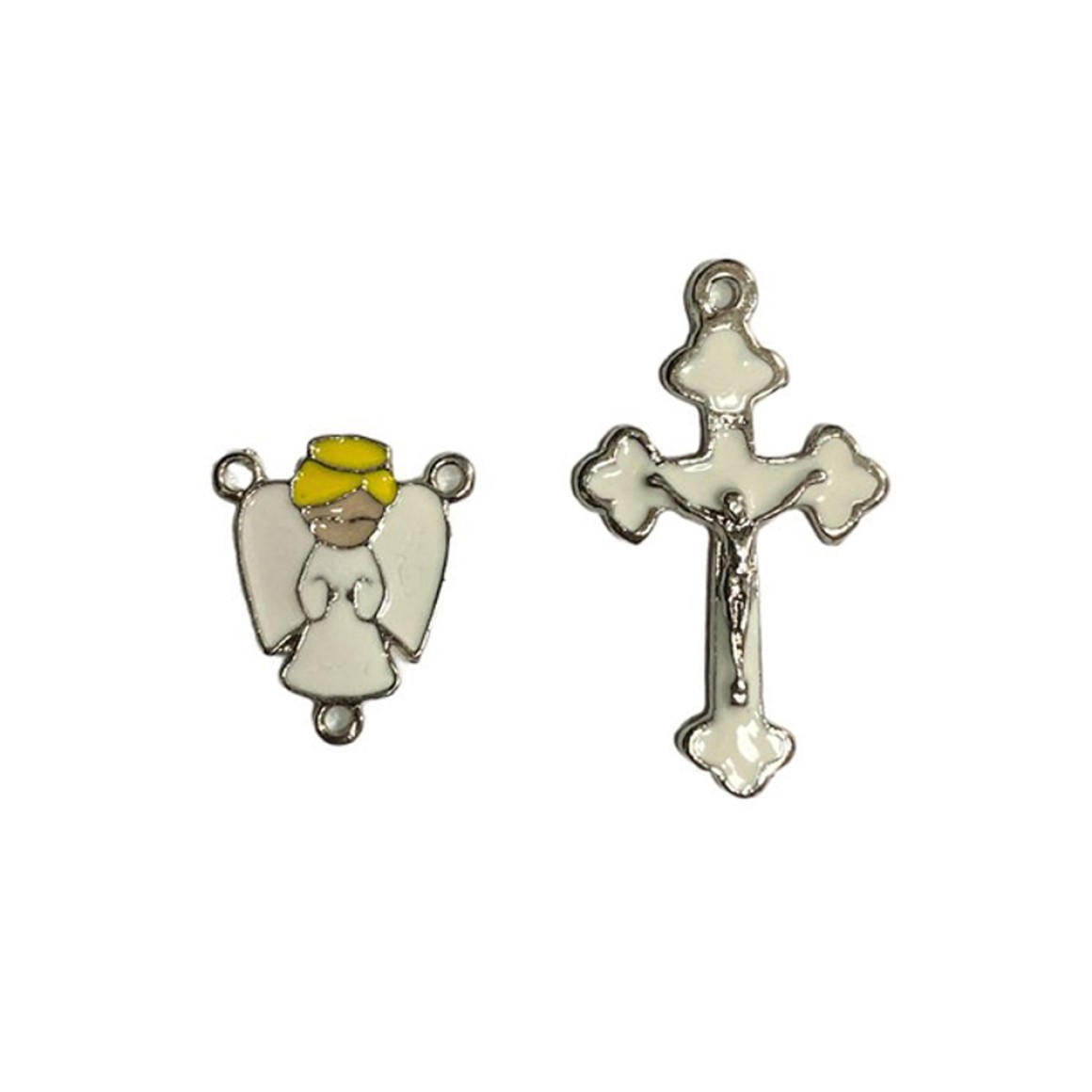 KT720100 - Kit Cruz e Entremeio Anjinho Branco Níquel