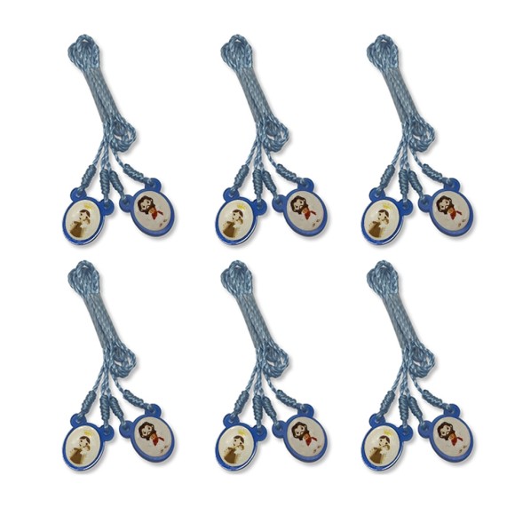 - ES720109P6 - Escapulário N. Sra. do Carmo e Sagrado Coração de Jesus Infantil Acrílico Azul c/ 6un. - 60x1,4cm