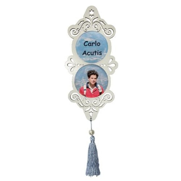 *Adorno São Carlo Acutis MDF Branco Resinado - 32x10,2cm.