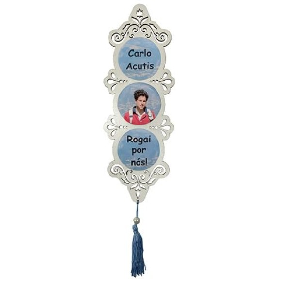 *Adorno São Carlo Acutis MDF Branco Resinado - 40x10,5cm.