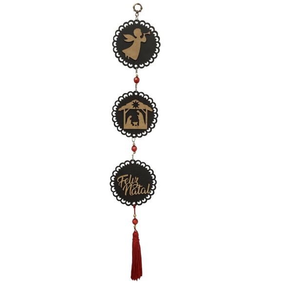 *Móbile Feliz Natal MDF - 40x7,5cm.
