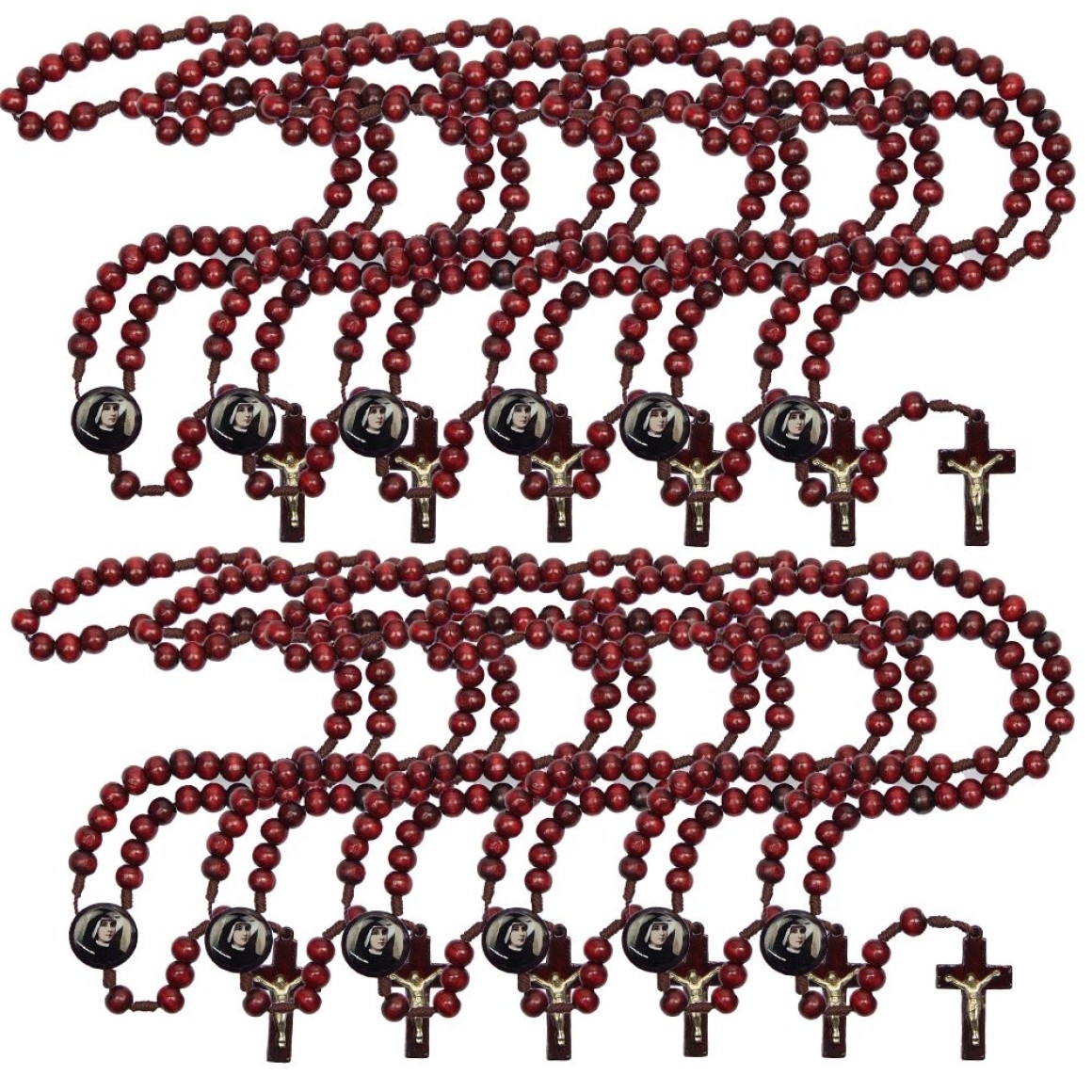 TE940251P12 - Terço Santa Faustina Madeira c/ 12un. - 37cm