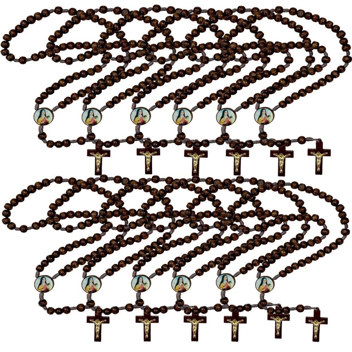 *Terço Santa Terezinha Madeira c/ 12un. - 37cm.