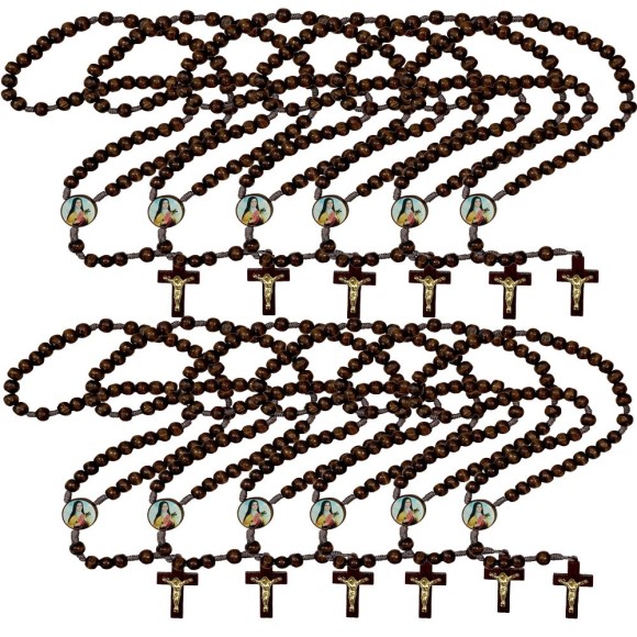 TE940310P12 - Terço Santa Terezinha Madeira c/ 12un. - 37cm