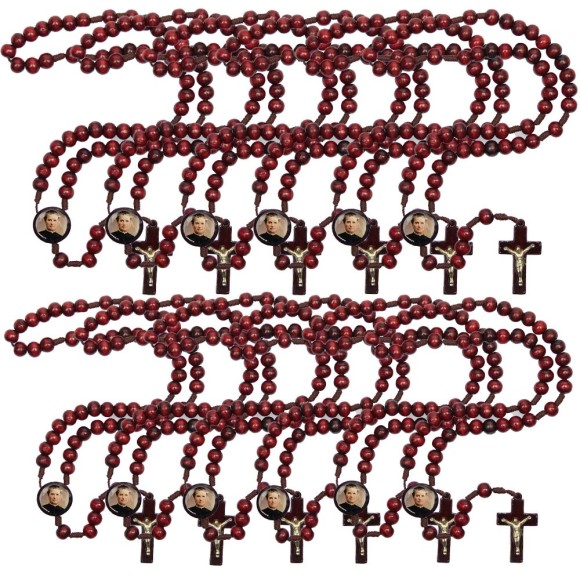 TE940491P12 - Terço São João Bosco (Dom Bosco) Madeira c/ 12un. - 37cm