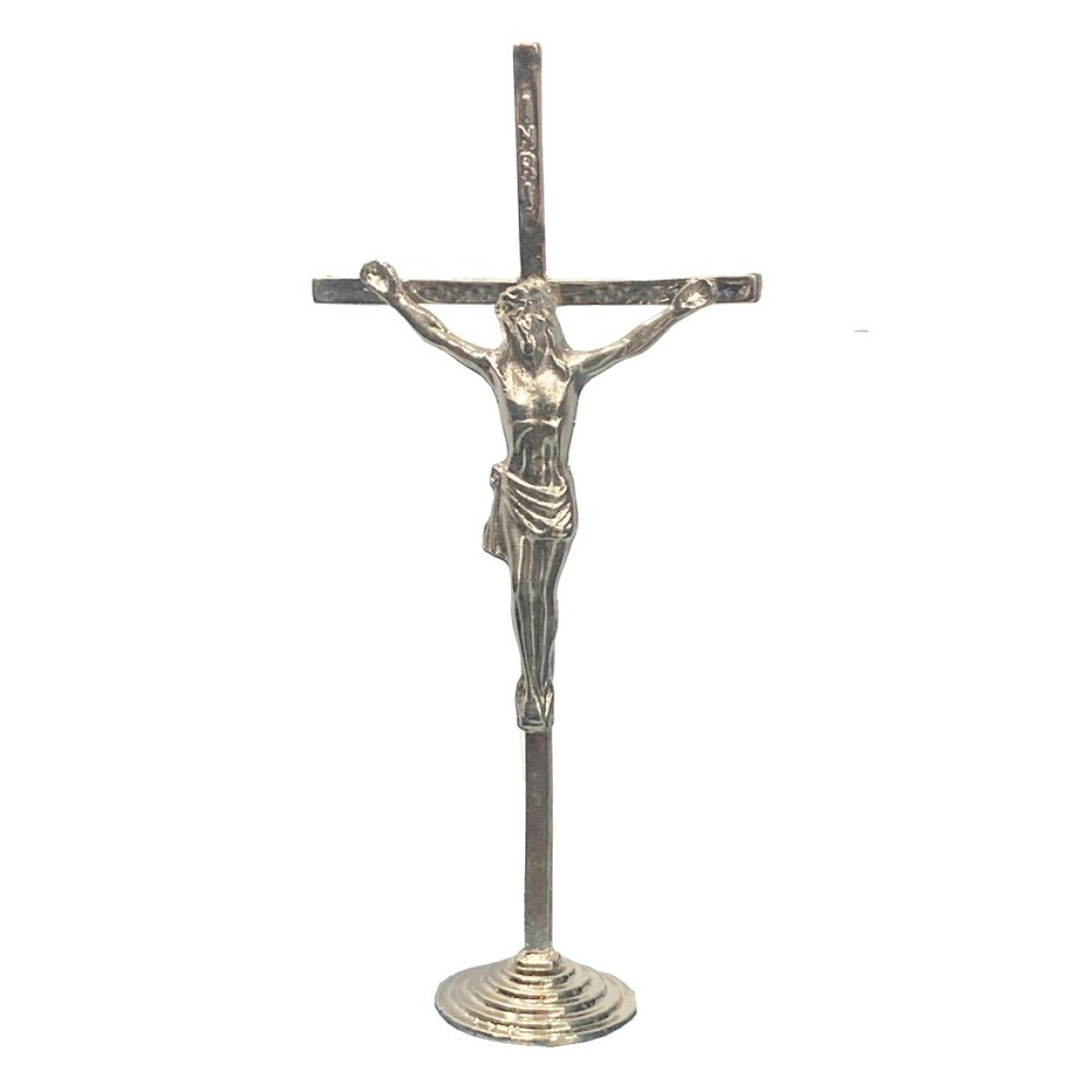 *Crucifixo de Mesa Metal Níquel - 14x6,5cm (621).