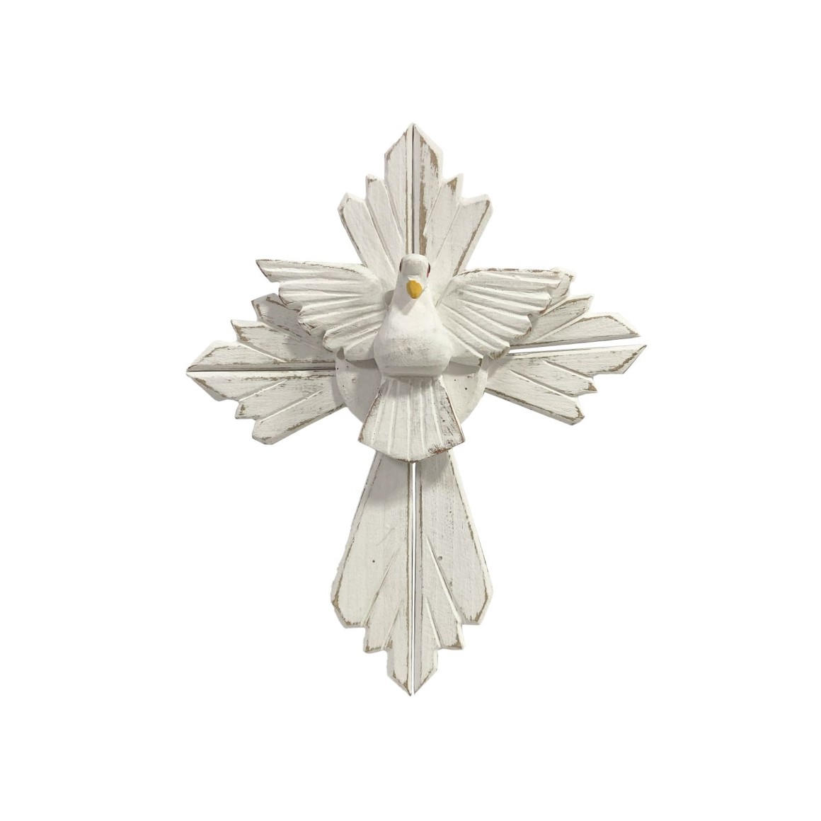 DF1982100 - Divino Espírito Santo Resplendor Cruz Madeira Branca - 28x22cm