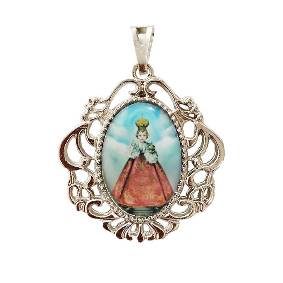 MD129521 - Medalha Menino Jesus de Praga Camafeu Níquel - 5,5x4,2cm