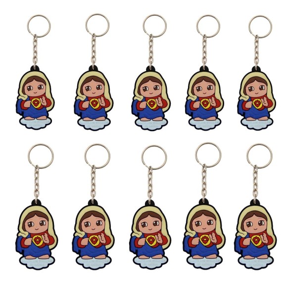 CH50002P10 - Chaveiro Imaculado Coração de Maria Emborrachado c/10un. - 11x3cm