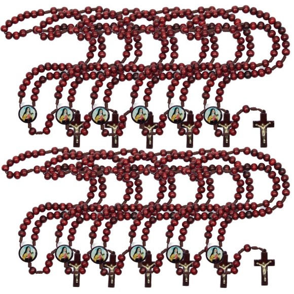TE940311P12 - Terço Santa Terezinha Madeira c/ 12un. - 37cm