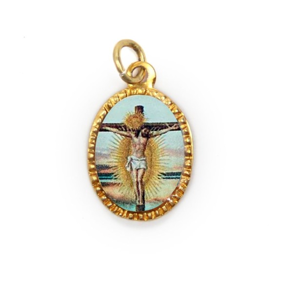 *Medalha de Alumínio Oval Grande Dourada c/ 10un. Bom Jesus da Lapa - 2x1,3cm.