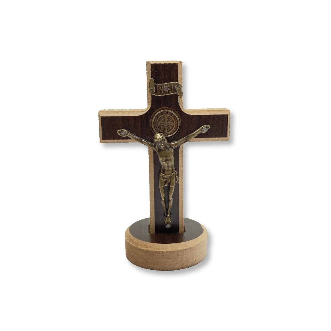 *Crucifixo de Mesa São Bento Madeira - 12x8cm.
