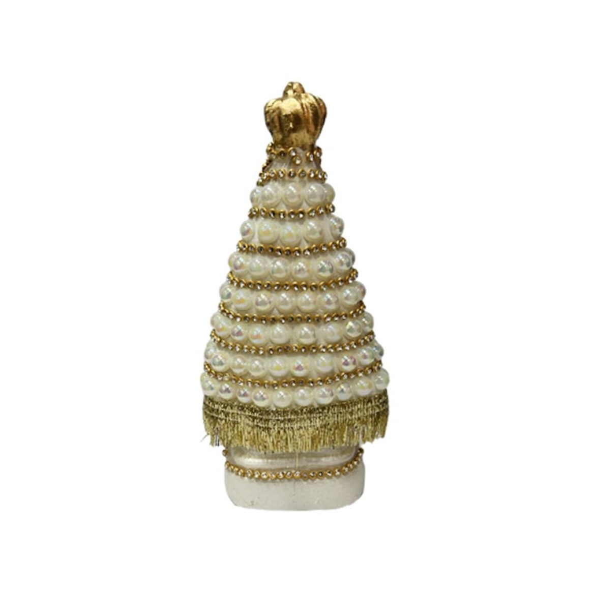 IM100304 - Imagem N. Sra. Aparecida c/ Pérola Branca Furta-cor e Strass Dourada - 16x9cm