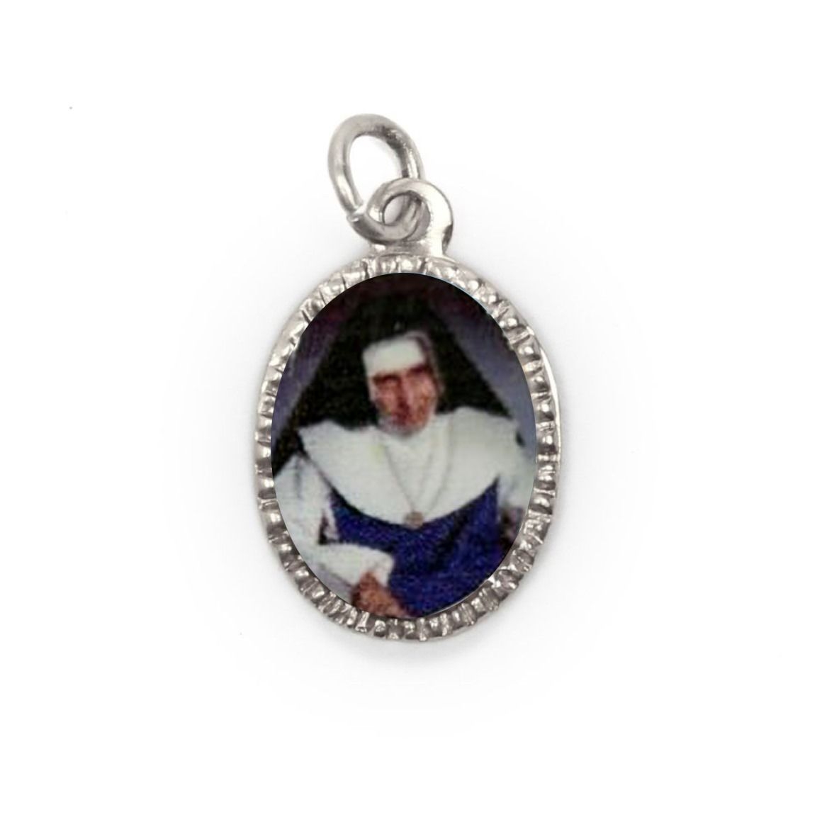 - MD103720P10 - Medalha de Alumínio Oval Grande Prata c/ 10un Santa Dulce dos Pobres (Irmã Dulce) - 2X1,3cm