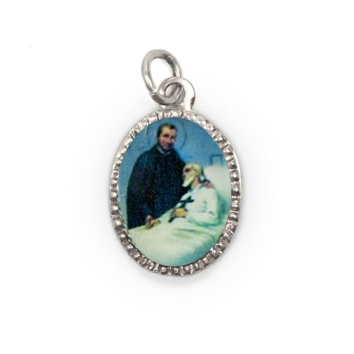 MD103887P10 - Medalha de Alumínio Oval Prata c/ 10un. São Camilo de Lellis - 2X1,3cm