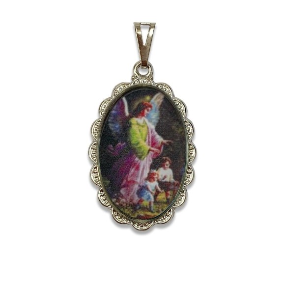 *Medalha Anjo da Guarda Rendada Níquel - 5x2,5cm