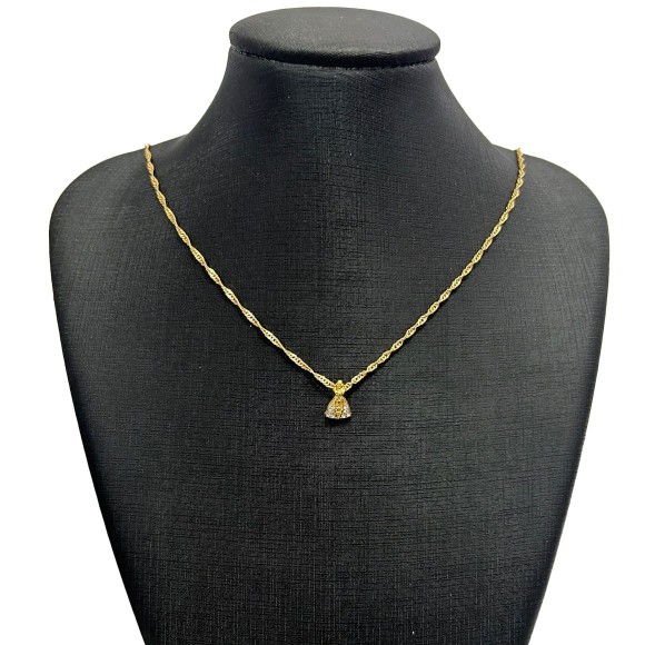 *Colar N. Sra. Aparecida Folheado c/ Strass Branco - 45cm.