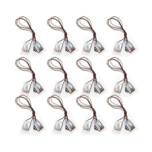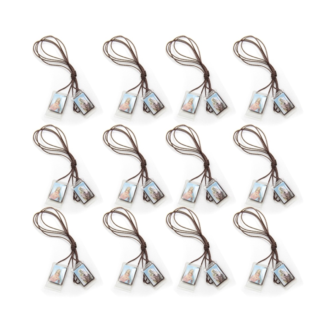 - ES149001P12 - Escapulário N. Sra. Do Carmo e Sagrado Coração de Jesus Plástico c/ Tecido 12un. - 68x1,3cm