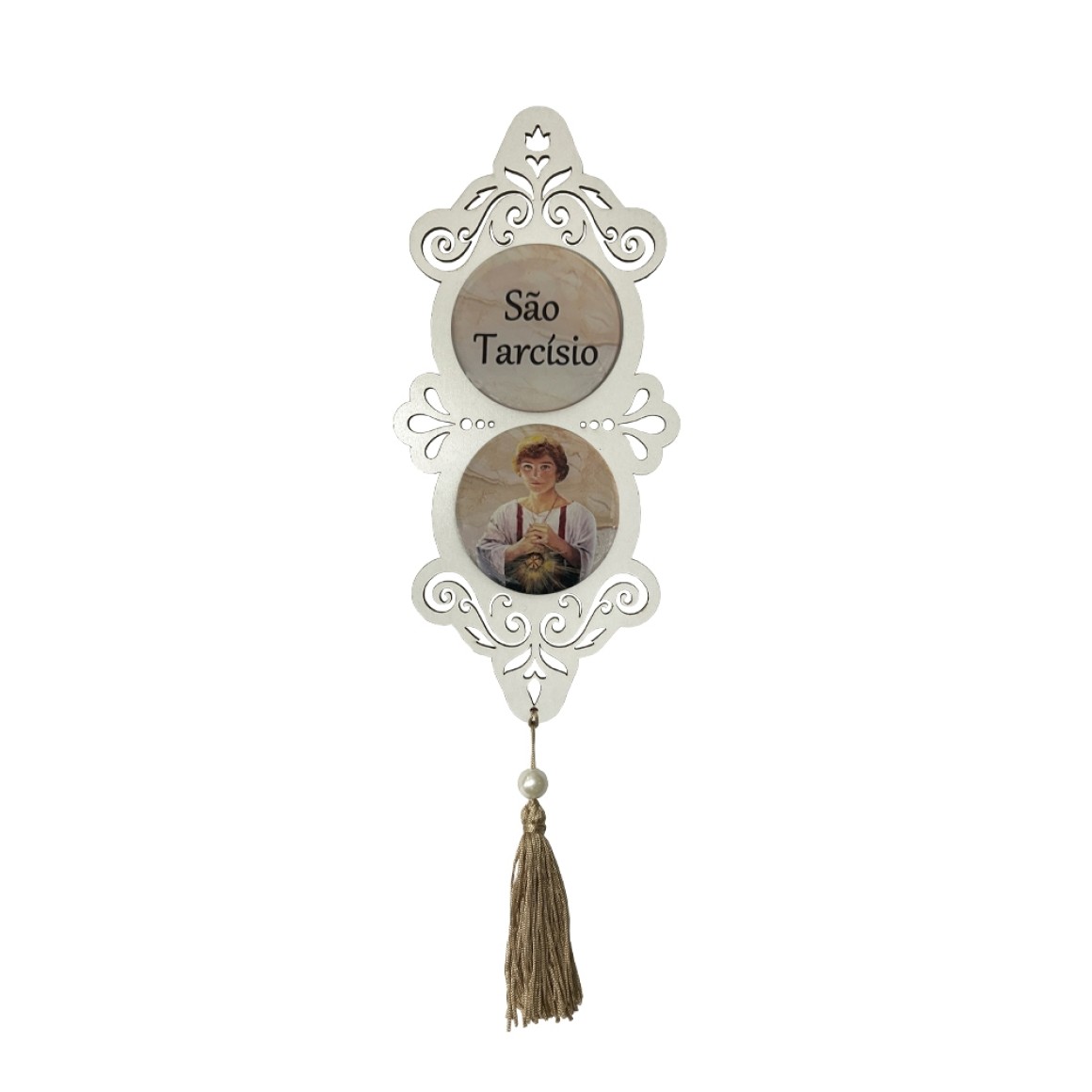 *Adorno São Tarcísio MDF Branco Resinado - 32x10,2cm.