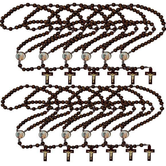 *Terço Sagrada Família Madeira c/ 12un. - 37cm.