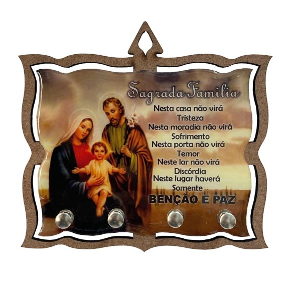 *Porta Chaves Sagrada Família MDF Resinado - 15,5x14cm.