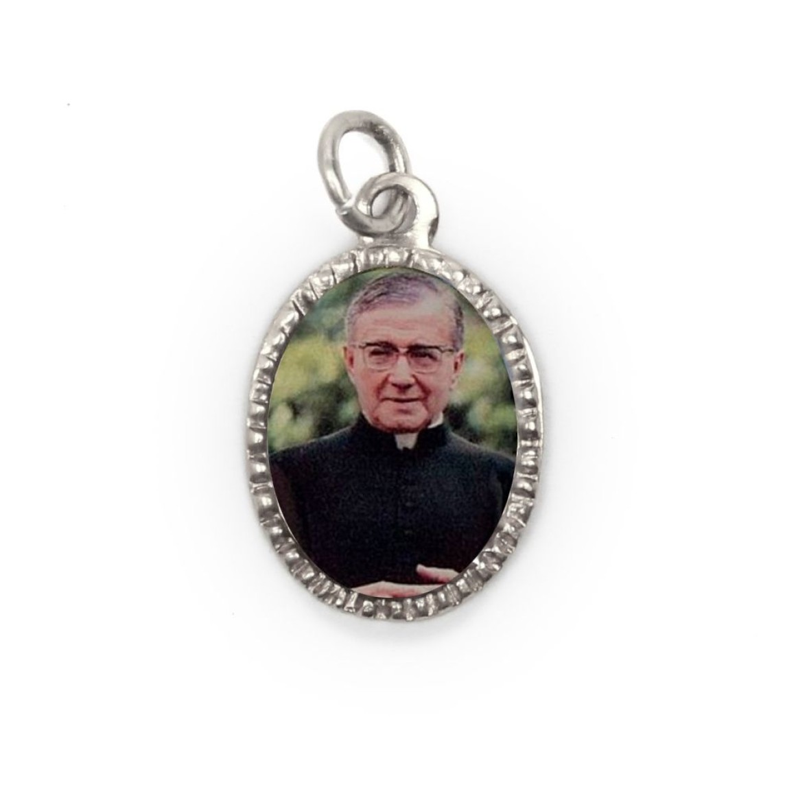- MD103844P10 - Medalha de Alumínio Oval Prata São Josemaria Escrivá Balaguer c/ 10un. - 2x1,3cm