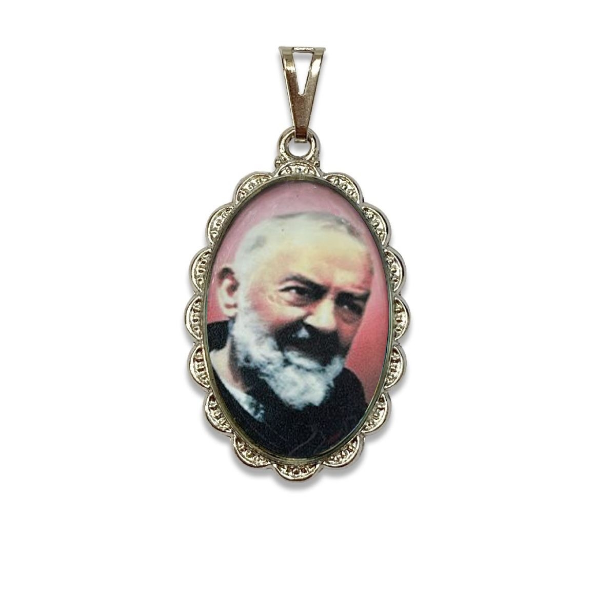 *Medalha São Padre Pio de Pietrelcina Rendada Níquel - 4,1x2,6cm.