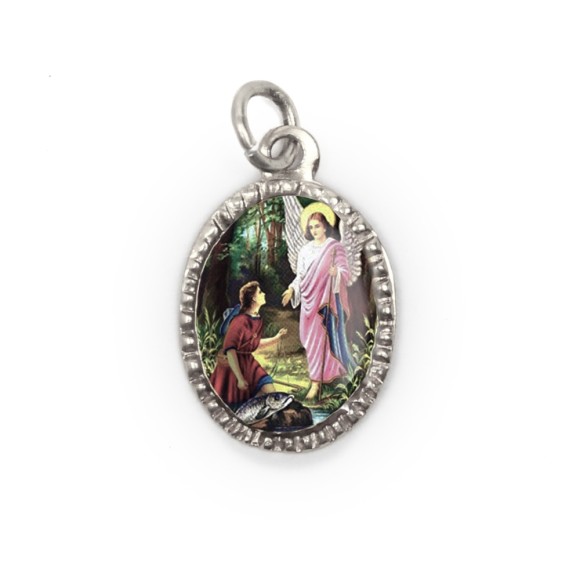 *Medalha de Alumínio Oval Prata c/ 10un. São Rafael Arcanjo - 2X1,3cm.