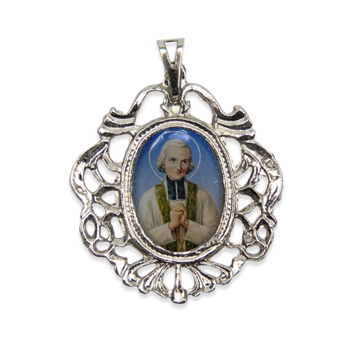 MD129432 - Medalha São João Maria Vianney Camafeu Níquel - 5x4,2cm