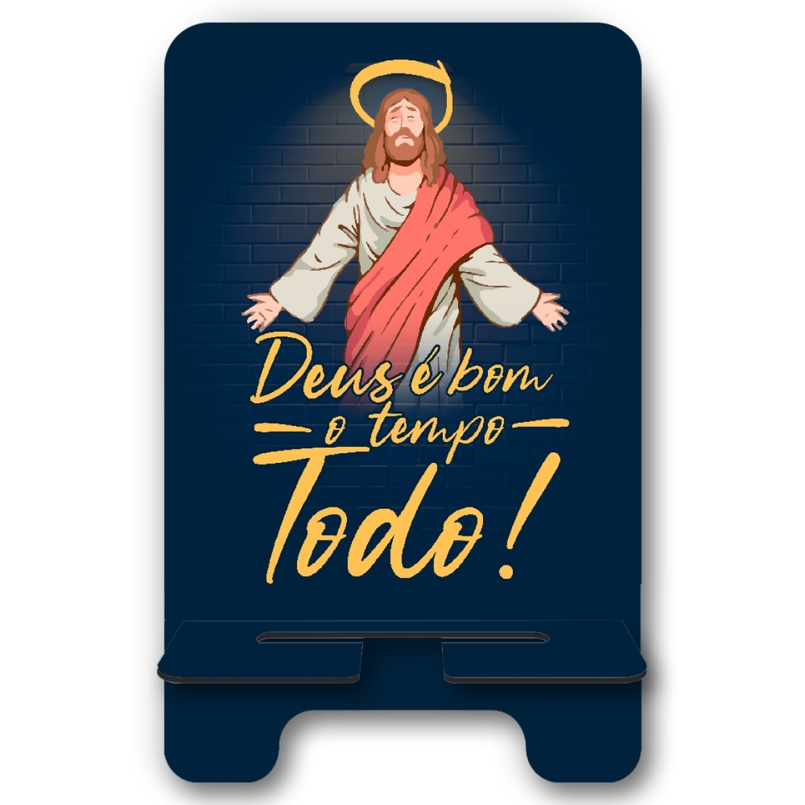 *Porta Celular Deus é Bom o Tempo Todo MDF - 17x9,5cm.