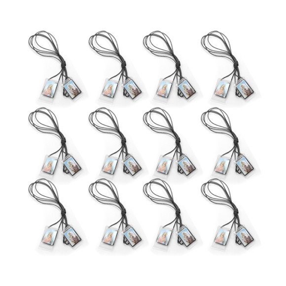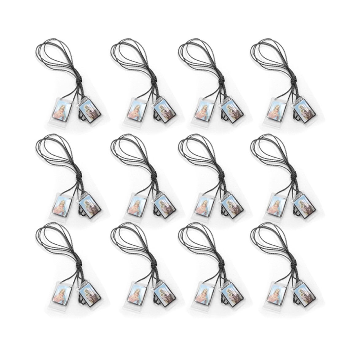 ES149002P12 - Escapulário N. Sra. Do Carmo e Sagrado Coração de Jesus Plástico c/ Tecido 12un. - 66x1,3cm