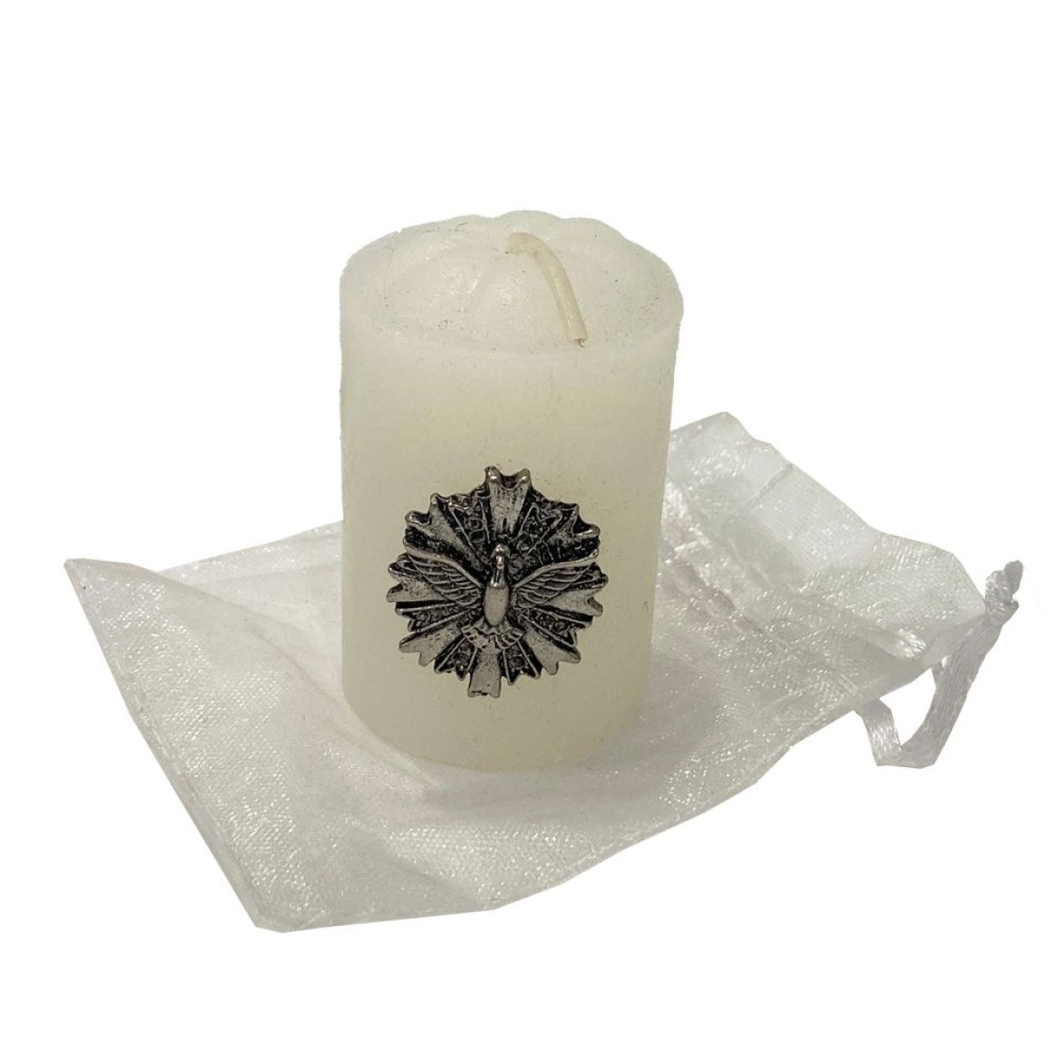 VE750322 - Vela Divino Espírito Santo c/ Pingente Níquel Envelhecido - 6x4cm