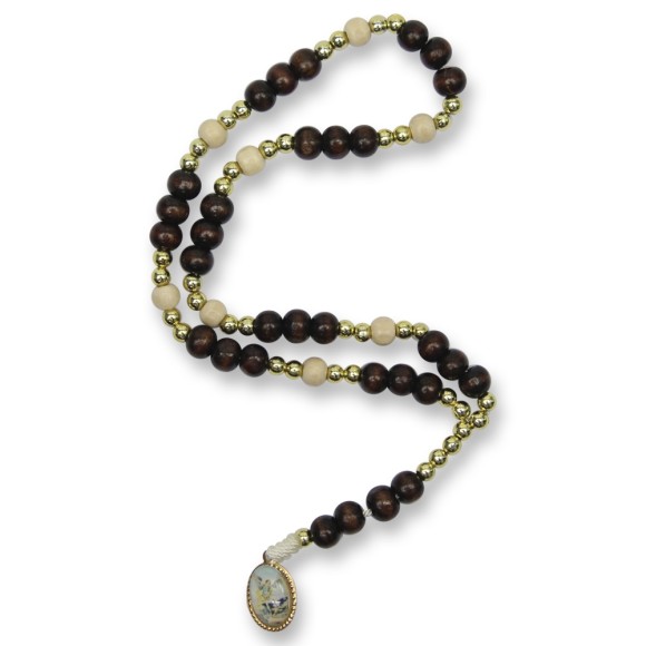 *Terço São Miguel Arcanjo Madeira Marrom - 24cm.