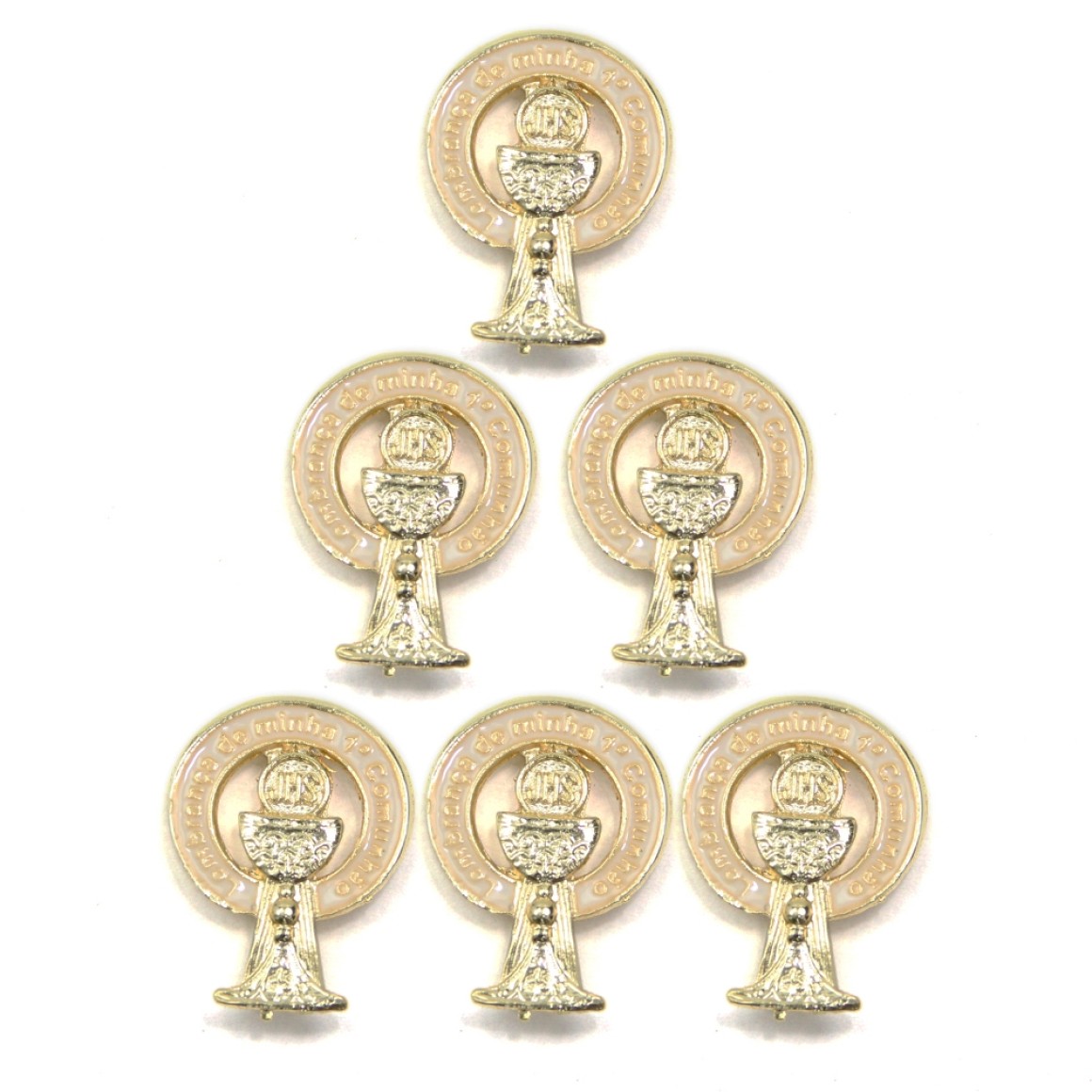 BO112021P6 - Botton Primeira Eucaristia Cálice Dourado c/ 6un. - 2,5x1cm