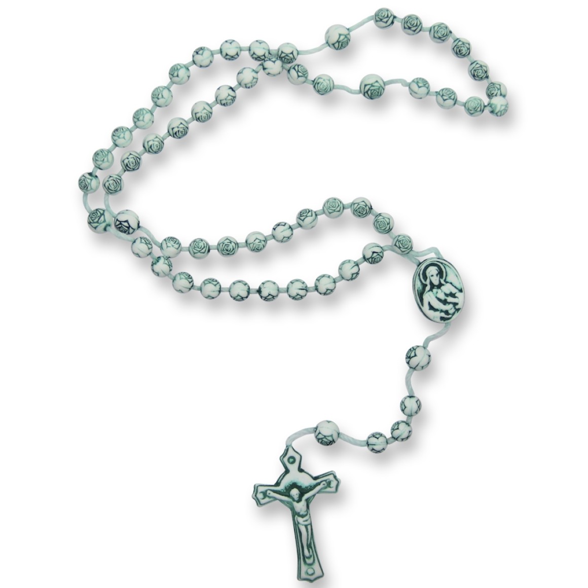 *O TERÇO DE ACRILICO contém contas de Rosas envelhecidas nº 4 e fio de nylon;
