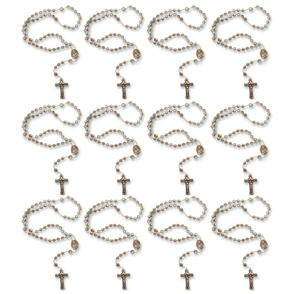 *O TERÇO DE ACRILICO contém contas de Rosas envelhecidas nº 4 e fio de nylon;