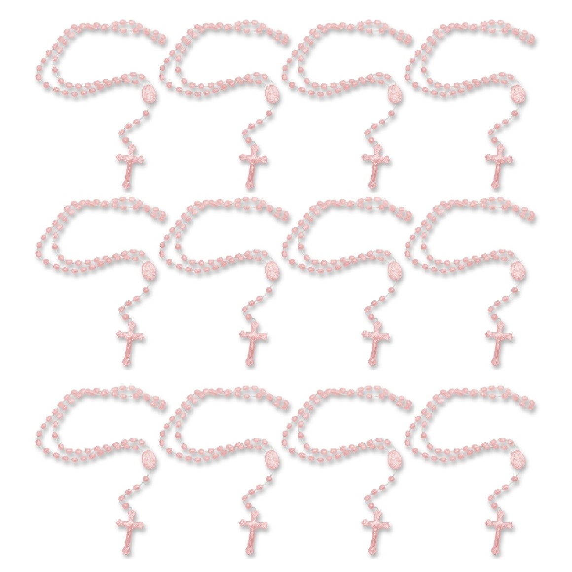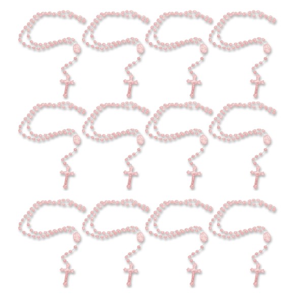 TE050021P12 - Terço Acrílico Rosa Perolado c/ 12un. - 32cm