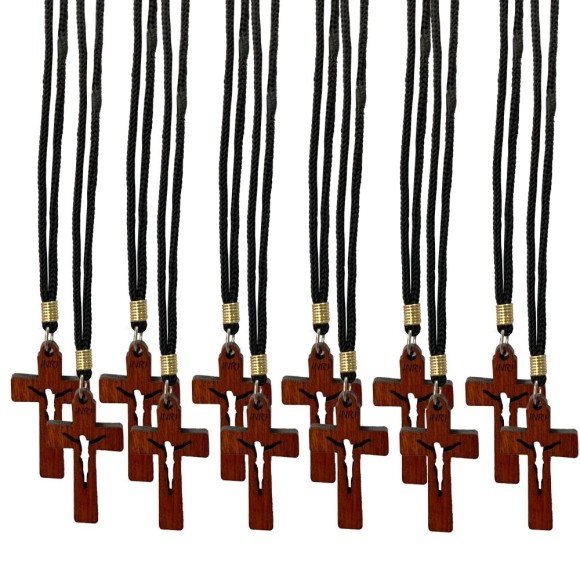 CC360000P12 - Cordão c/ Crucifixo Madeira Vazado c/ 12un.- 43cm