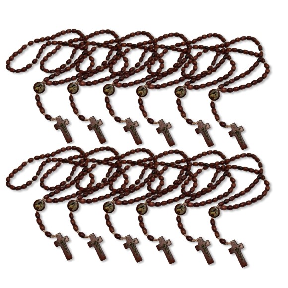 TE942028P12 - Terço Santa Terezinha das Rosas Madeira c/ 12un. - 45cm