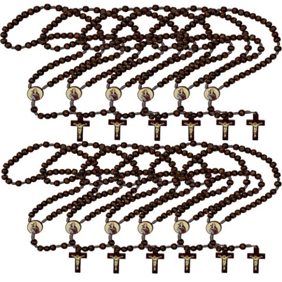 *Terço Santa Clara Madeira c/ 12un. - 37cm.