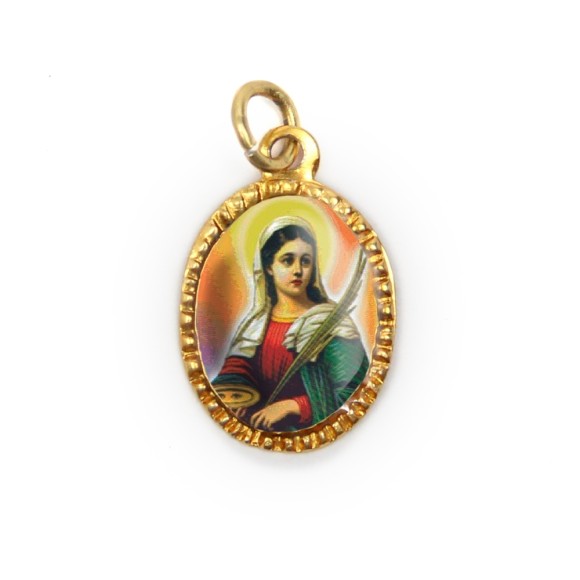 *Medalha de Alumínio Oval Dourada c/ 10un. Santa Luzia - 2X1,3cm.