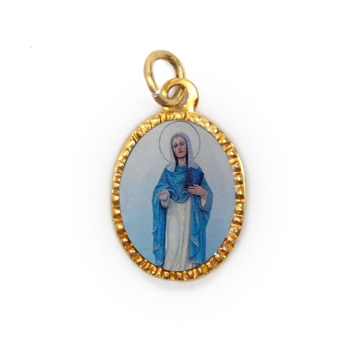 *Medalhas Alumínio Oval Dourada c/ 10un Santa Marcelina - 2x1,3cm.