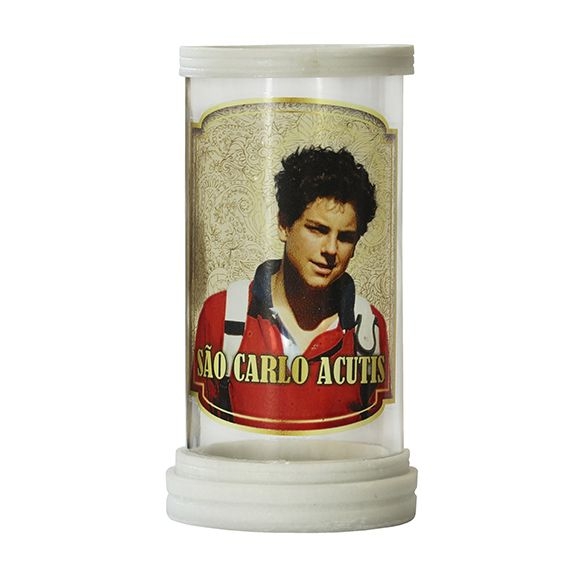 PV158135 - Porta Vela Vidro São Carlo Acutis - 17x9,3cm