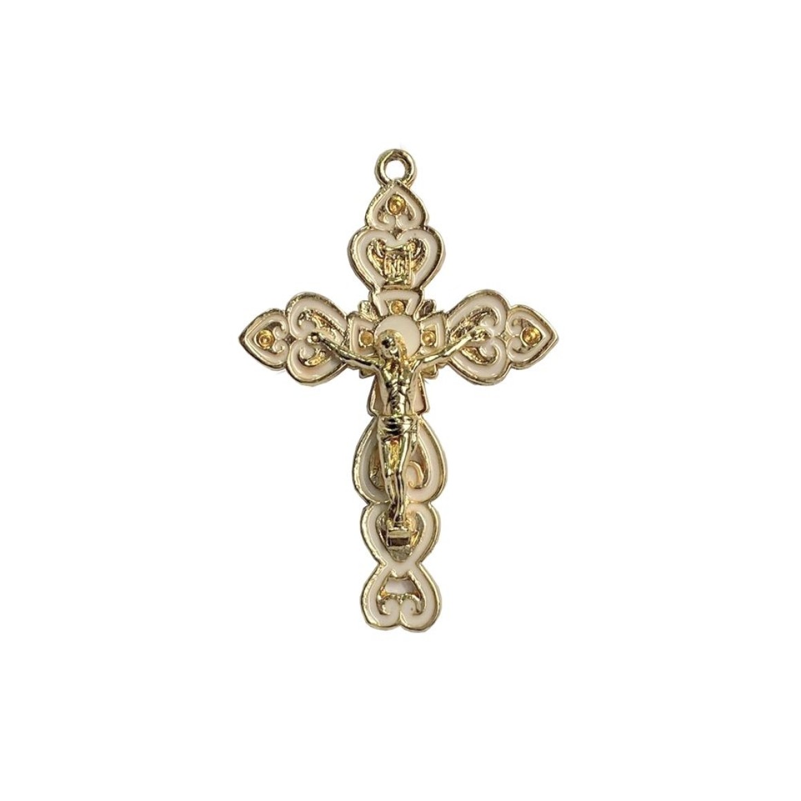 *Crucifixo Metal Dourado Resinado Branco - 7,3x4,8cm.