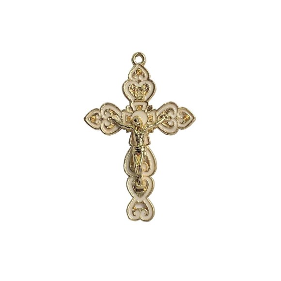 CZ861777 - Crucifixo Metal Dourado Resinado Branco - 7,3x4,8cm