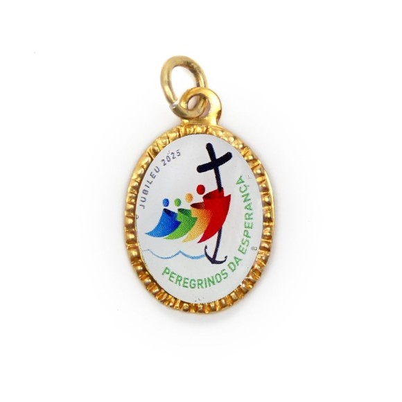 JB209000P10 - Medalha de Alumínio Oval Dourada c/ 10un. Jubileu de Esperança 2025 - 2x1,3cm