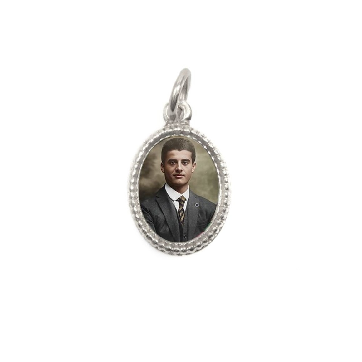 MD102535P20 - Medalha de Alumínio Oval Prata São Pier Giorgio Frassati c/ 20un. - 1,5x1cm